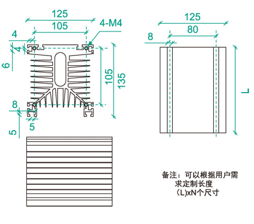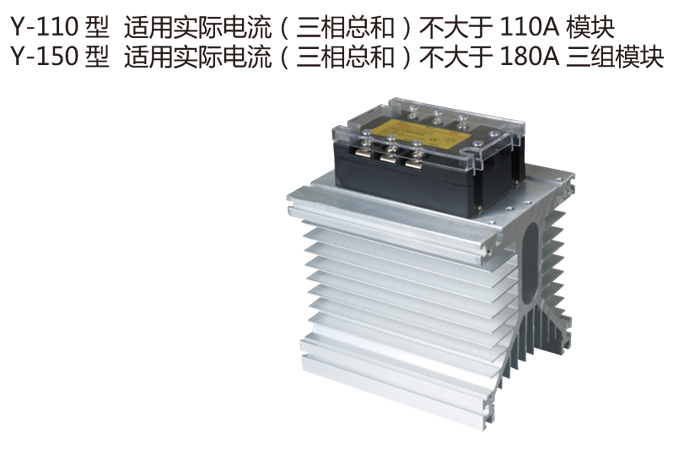 外形尺寸: 適用實(shí)際電流范圍及產(chǎn)品實(shí)用示例: 產(chǎn)品特點(diǎn): 固態(tài)繼電器或電力半導(dǎo)體要配什么型號的散熱器?其實(shí)二者之間并沒有完全一致的對應(yīng)關(guān)系,因?yàn)楣虘B(tài)繼電器或電力半導(dǎo)體模塊的發(fā)熱量主要跟驅(qū)動(dòng)的負(fù)載的實(shí)際電流有關(guān),而與其本身的電流等級大小關(guān)系不大。發(fā)熱量的計(jì)算公式:1、 發(fā)熱量=實(shí)際負(fù)載電流×1.5W/安培,以上公式適用于單相固態(tài)繼電器,R系列固態(tài)調(diào)壓器,單相交流調(diào)壓模塊,單只電力半導(dǎo)體模塊系列產(chǎn)品。而對三相固態(tài)繼電器,三相交流調(diào)壓模塊系列產(chǎn)品,其實(shí)際負(fù)載電流應(yīng)該為三相實(shí)際負(fù)載電流之和,計(jì)算公式如下:2、 發(fā)熱量=實(shí)際負(fù)載電流×3.0W/安培,以上公式適用于單相整流模塊及三相整流模塊系列產(chǎn)品。散熱器的作用就是把固態(tài)繼電器或電力半導(dǎo)體模塊工作中產(chǎn)生的熱量有效的發(fā)出來,但實(shí)際上(考慮到價(jià)格因素時(shí))選擇散熱器的大小,很難用一句話就能確定,因?yàn)樯崞餍Ч坏崞鞔笮∮嘘P(guān),還跟環(huán)境溫度(季節(jié)),通風(fēng)條件(自然冷卻或強(qiáng)迫冷卻及風(fēng)量大。┮约鞍惭b密度等因素有關(guān)。散熱效果的參照標(biāo)準(zhǔn):使固態(tài)繼電器或電力半導(dǎo)體模塊的底板(與散熱器接觸面)溫度不得超過80℃.因此實(shí)際應(yīng)用中可在散熱器安裝面靠近固態(tài)繼電器或模塊的邊緣處(20mm以內(nèi))安裝一只75℃的溫度開關(guān)(帶一對常閉觸點(diǎn)),把固態(tài)繼電器或模塊的控制信號串入這對常閉觸點(diǎn),這樣當(dāng)檢測點(diǎn)溫度超過75℃時(shí),常閉觸點(diǎn)跳開,切斷控制信號,強(qiáng)迫關(guān)閉固態(tài)繼電器或模塊的輸出,使其得到保護(hù)。一般在每相實(shí)際電流超過50A,安裝密度大,環(huán)境溫度高的地方,好采用溫度開關(guān)保護(hù)。選用散熱器除考慮上述因素外,還要考慮固態(tài)繼電器或模塊本身體積與散熱器能否相配,以及散熱器在機(jī)柜中的安裝空間,但要保證使在惡劣情況下固態(tài)繼電器或模塊的底板溫度不得超過80℃。本公司主要的散熱器產(chǎn)品主要有以下規(guī)格:YM-I型 YM-W型 YM-T型 YM-G型 YM-L型 YM-M型 YM-H型 YM-E YM-Z型 YM-Y型 YM-X型。