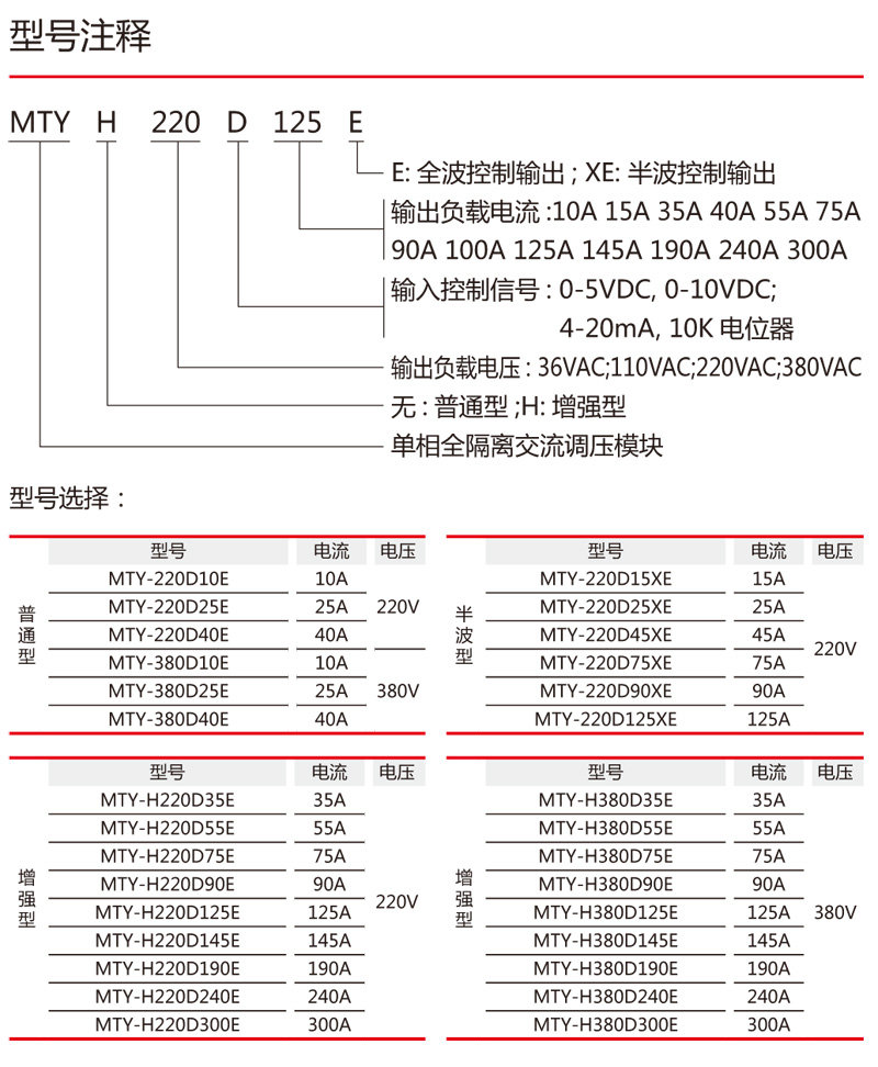Voltage Regulating Modles/Power Controller >> Single-phase Voltage Regulating Modle AC MTY-220E/MTY-H220E/MTY-220XE