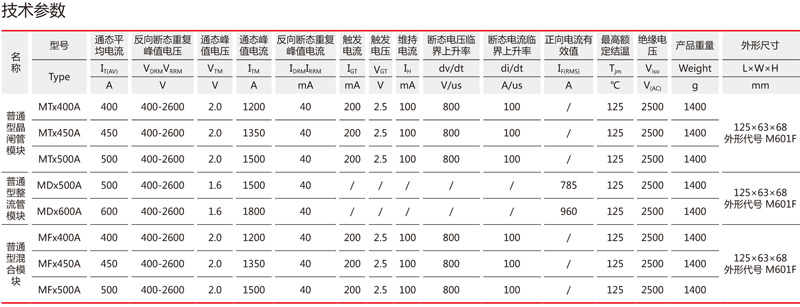 Thyristor/Rectifiter/Hybrid Modules >> Thyristor/Rectifiter/Hybrid Modules MTx/MDx/MFx(400A-600A)